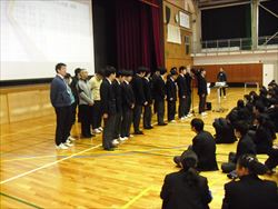 岡山御津高等学校ホームページ学校行事令和元年度 校内マラソン大会 令和元年度 校内マラソン大会 article 2月7日(金)、校内マラソン大会を実施しました。 本校近くを流れる旭川の川岸に沿って、男子は7.0km 、女子は5.0kmのコースを走りました。一人で黙々と走る生徒もいれば、友人と励まし合いながら走る生徒もおり、スタイルは様々でしたが、全員が一生懸命にゴールを目指していました。 走り終わった後は、例年と同様にPTAの皆さまが作ってくださった豚汁をいただきました。今シーズン一番の冷え込みとなった本日、温かくおいしい豚汁は疲れた体に沁み渡りました。PTAの皆さま、ありがとうございました。 閉会式では、男女とも上位10名が表彰され、健闘を称えあいました。